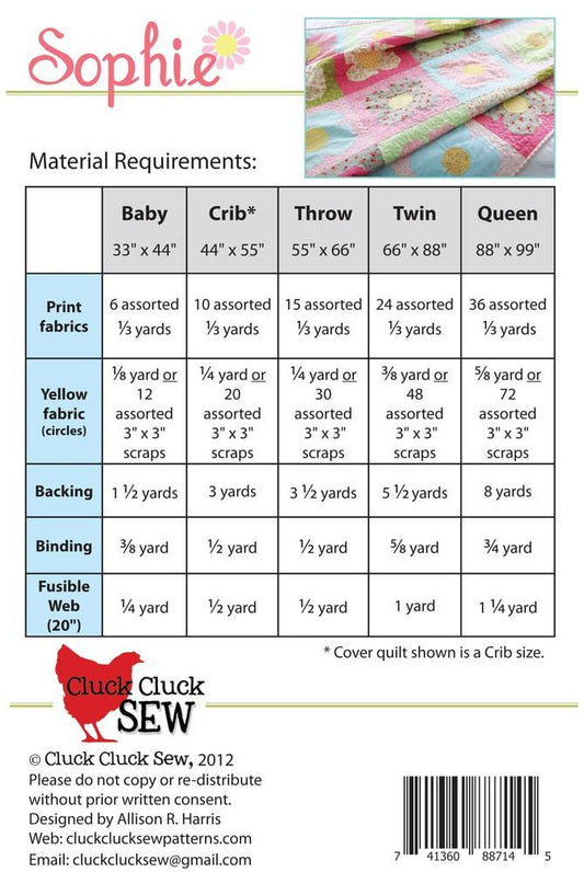 Sold outCluck Cluck Sew Sophie Quilt Pattern