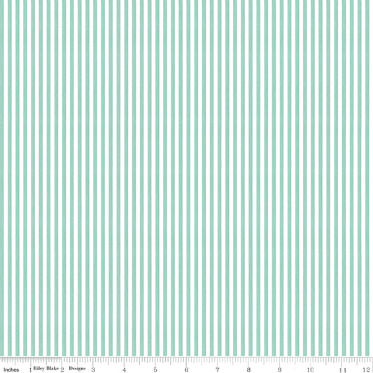 Egg Hunt Stripes Aqua Fabric - By the yard