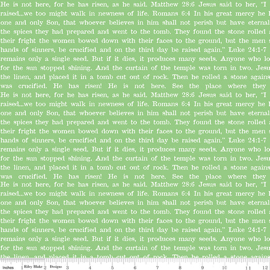 Egg Hunt Empty Tomb Text Green Fabric - By the yard
