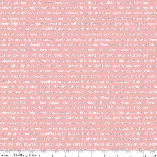 Egg Hunt Empty Tomb Text Pink Fabric - By the yard