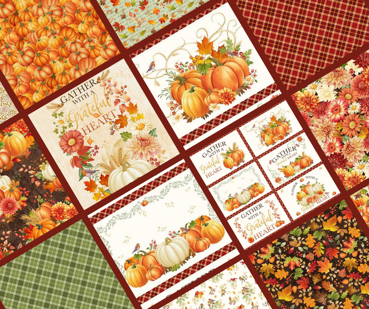 Gather with a Grateful Heart Packed Pumpkin Fabric - By the yard