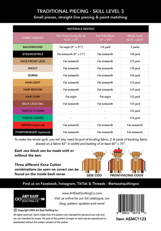 Art East Mini Coos A Highland Cow Quilt Pattern