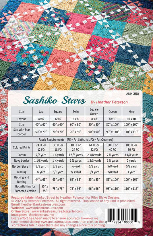 Anka's Treasures Sashiko Stars Quilt Pattern