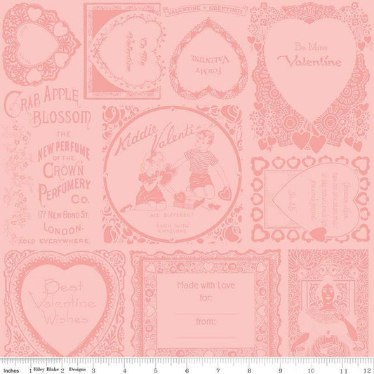 Take Heart Valentine Card Toss White Fabric - By the yard
