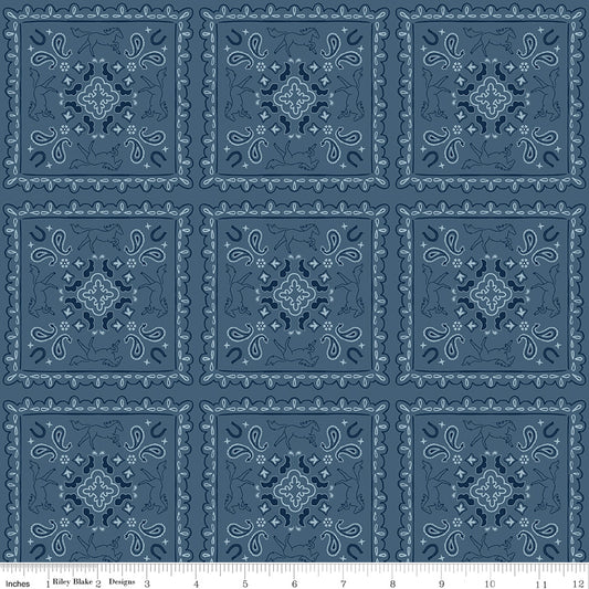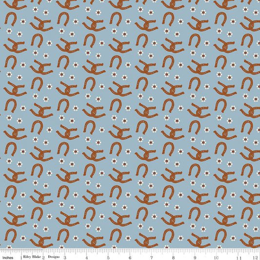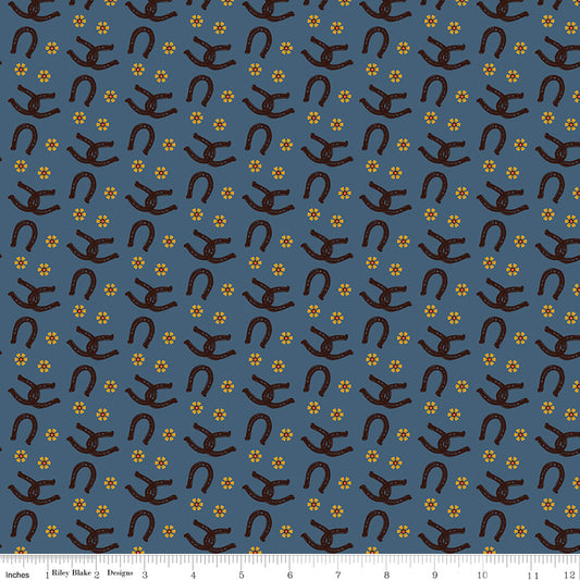 Wild Rose Horseshoes Blue Fabric - By the yard