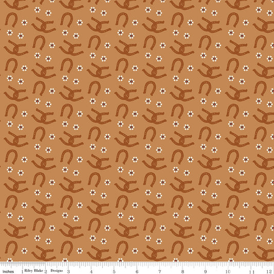 Wild Rose Horseshoes Sienna Fabric - By the yard