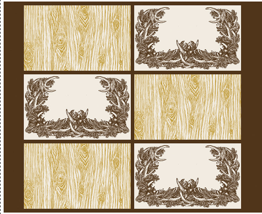 Monthly Placemats by Hester & Cook for Riley Blake Designs is great for quilting, apparel and home decor. This placemat panel features three placemats with a border of antlers and fall foliage and three placemats with gold sparkle tree bark. Individual placemat size is approximately 11" x 18". Panel size is 35 1/2" x 43 1/2".