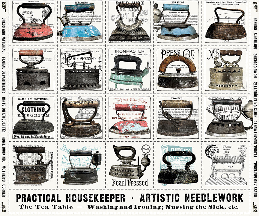 Press On by J. Wecker Frisch for Riley Blake Designs is great for quilting, apparel and home decor. This digitally printed panel features patchwork squares with vintage irons. Panel size is 36" x 43".