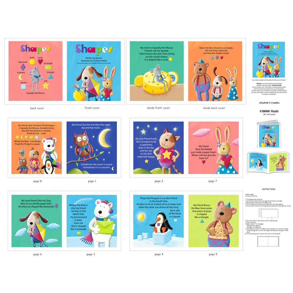 This beautiful panel features an adorable animals with shapes and makes a softbook.